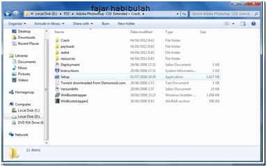 10. Untuk menCrack file Adobe Photoshop CS3 tersebut, buka File induk , kemudian pilih file crack